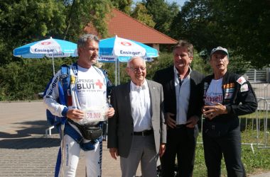 DRK Blutspendeaktion in Tripsdrill 2018: Sozialminister Lucha und weitere Promis besuchen am Eröffnungstag den Infostand Organspende